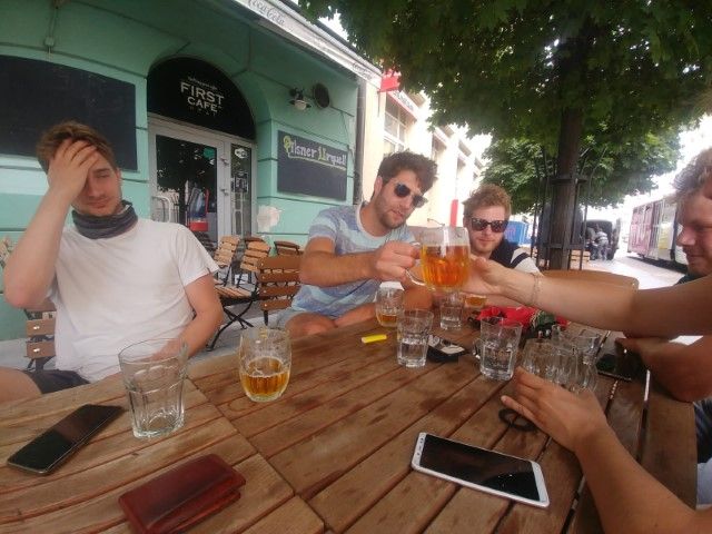 Wir packen uns zusammen und fahren Richtung Ungarn. Noch in der Slowakei besprechen wir bei Kaffee, Pommes und Cola die weiteren Reisepläne. Denn wo und wie wir weiterwollen, ist noch unklar. Wir ziehen auch in Erwägung den Kurs komplett zu ändern und in den hohen Norden zu reisen. Außerdem buchen wir eine Unterkunft für die übernächste Nacht in Györ, denn unserer Leiber sehnen sich nach fließendem Wasser. Also fürs erste: Ungarn.