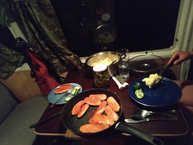 Übermannt und überfraut von der Müdigkeit schlunzen wir noch ein paar Stunden im Bus. Wir erkunden die Gegend und chillen am Wasser. Am Abend wird gekocht, geknoozt und nichts weiter - denn eine Pause tut uns mal ganz gut.