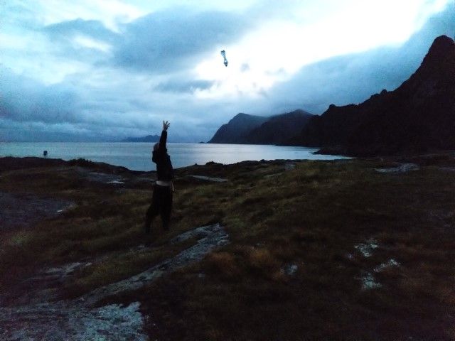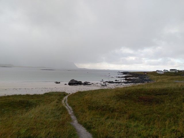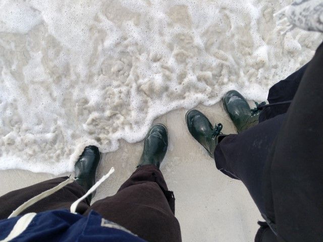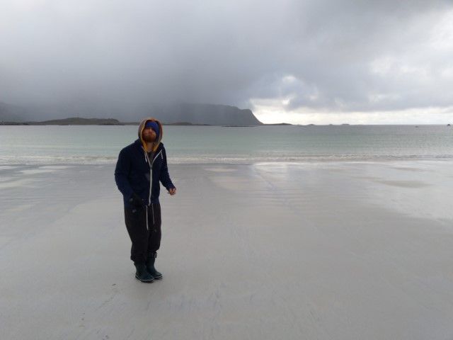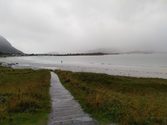 Dann packen wir uns zusammen und fahren zum Strand von Ramberg, wo wir Mittagessen kochen und einen nicht so klassischen Strandspaziergang in Gummistiefel machen, denn es regnet.