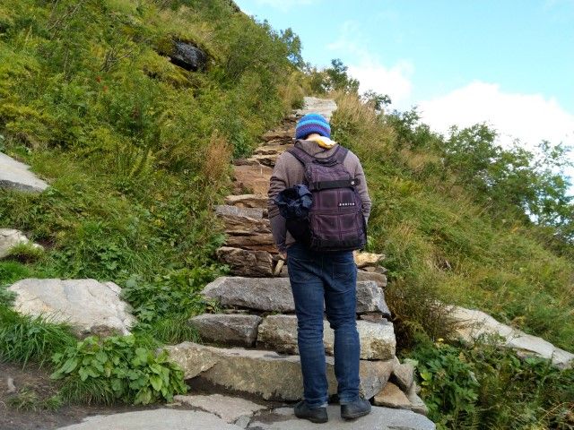 Ich beginne mit dem Abstieg während die Kroone noch den Ausblick genießt. Der erste Teil des Abstieges ist noch unangenehm, da es rutschig und schlammig ist, aber als wir wieder bei den Stiegen sind geht es gut voran.