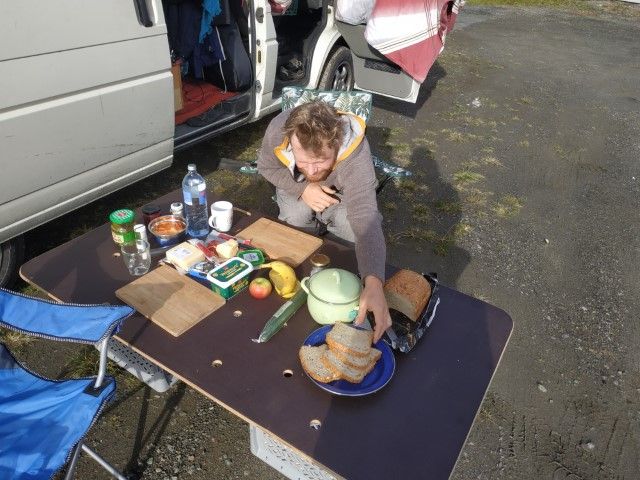 Opeth ist heute früher wach als ich. Er sitzt auf dem Fahrersitz, liest und lächelt mich an als ich aufwache: „Guten Morgen schöne Kroone“. Auch heute belohnt uns das Wetter und wir entscheiden uns für einen Brunch draußen auf unserem Esstisch :P