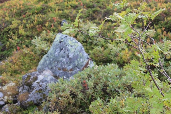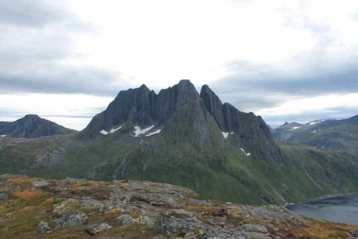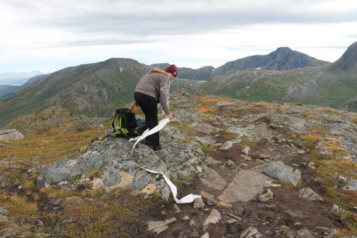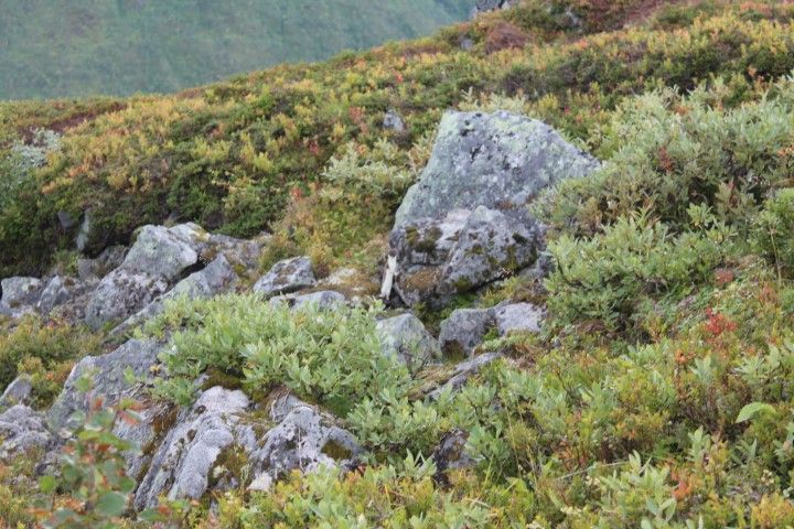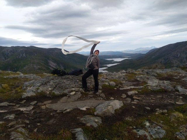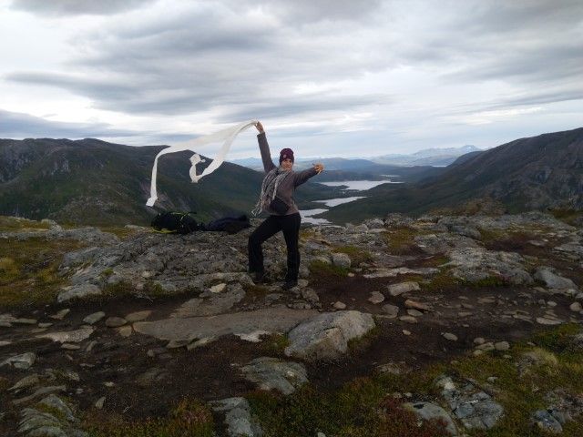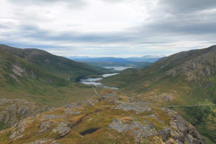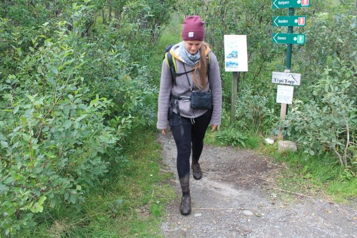 Herrlich! :D Nachdem wir uns gestärkt haben, fahren wir noch eine Stunde Richtung Norden, zu dem Einstiegspunkt des Wanderweges „Barden“, der zwischen Mefjordbotn und Stønnesbotn liegt. Voller Energie und guter Laune starten wir den 3 stündigen Weg. Bald, allerdings, verfliegt die gute Laune. Wie sich herausstellt verläuft die erste Stunde dieser Wanderung durch Sumpfgebiet. Die Vorsicht den richtigen Weg zu wählen, verfliegt spätestens als beide Füße knöcheltief im Matsch stehen. Opeth nimmts wie immer mit Fassung und Ruhe. Ich kämpfe ziemlich mit meiner Laune. Oben am Kamm angekommen, pausieren wir.