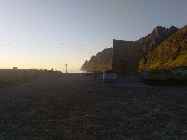Ich nutze den Ausblick, um nachhause zu telefonieren. Hier im Norden dauert die Abenddämmerung viel länger als zuhause. Obwohl die Sonne um 20:19 unterging blieb es bis 23:00 Uhr hell. Danach sahen Opeth und ich wieder ein paar kleine Nordlichter. Ein toller Tag!