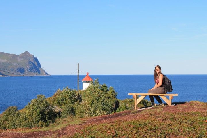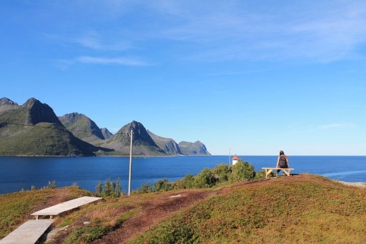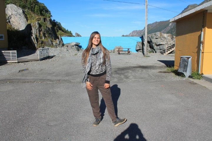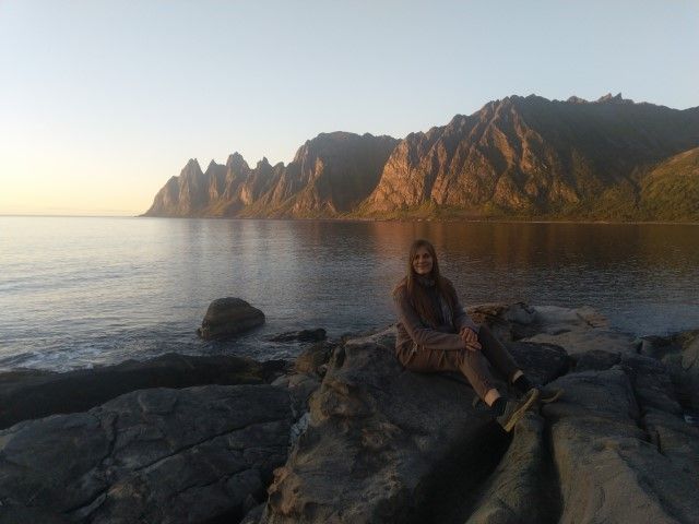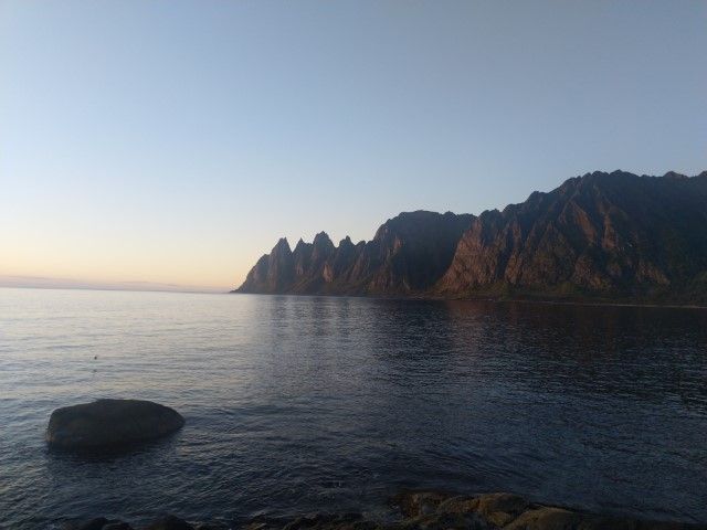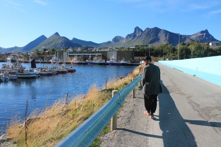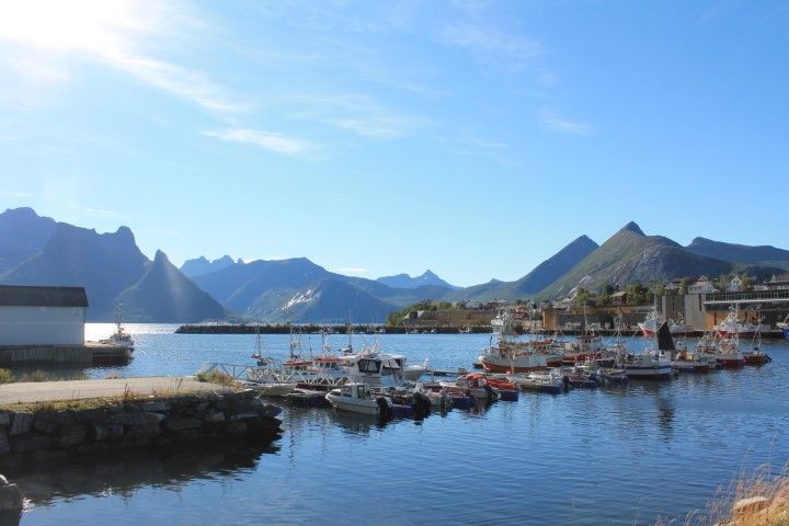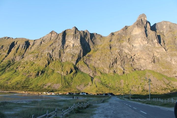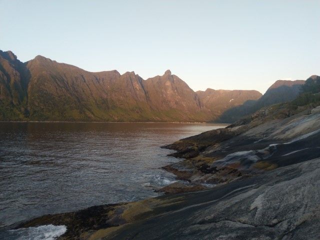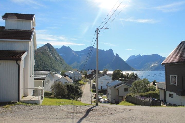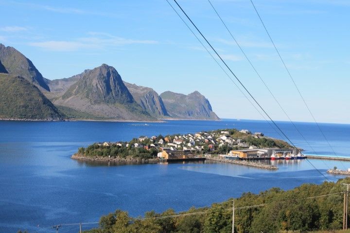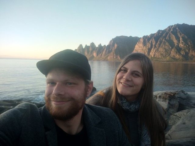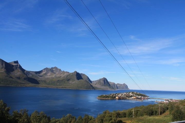 Nachdem Aufstehen und der täglichen Morgenroutine, brechen wir auf Richtung Husøy. Die Straße, an der wir übernachtet haben, führt direkt dort hin und erstrahlt bei Helligkeit vor Schönheit! Überall wunderschöne Berge und Landschaften. Wow!