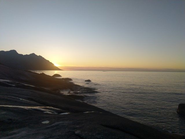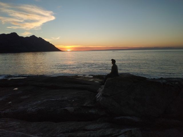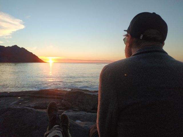 Danach geht’s weiter nach Tungeneset. Dort spazieren wir der Küste entlang und schauen uns den Sonnenuntergang an.