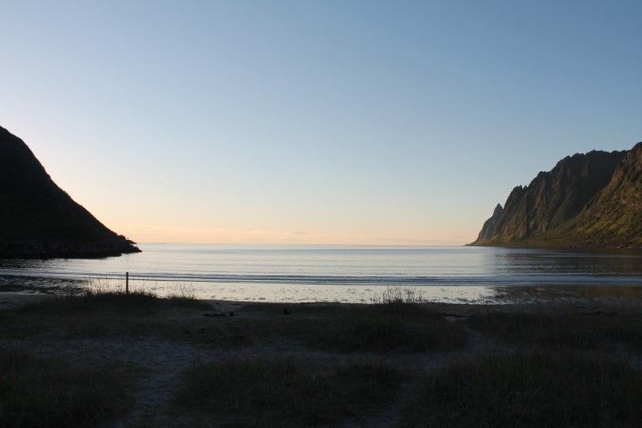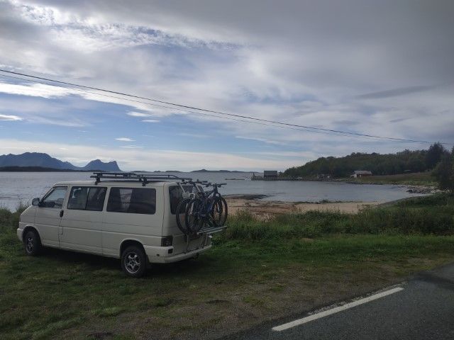 Weiter geht’s! Über einen Tunnel gelangen wir nach Skaland. Dort finden wir einen schönen Platz am Strand.