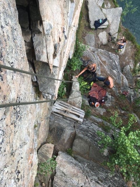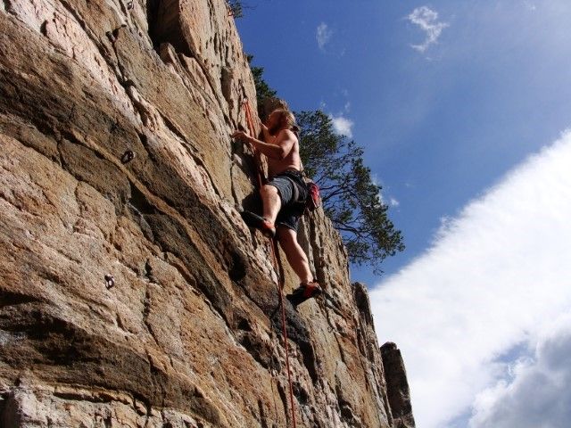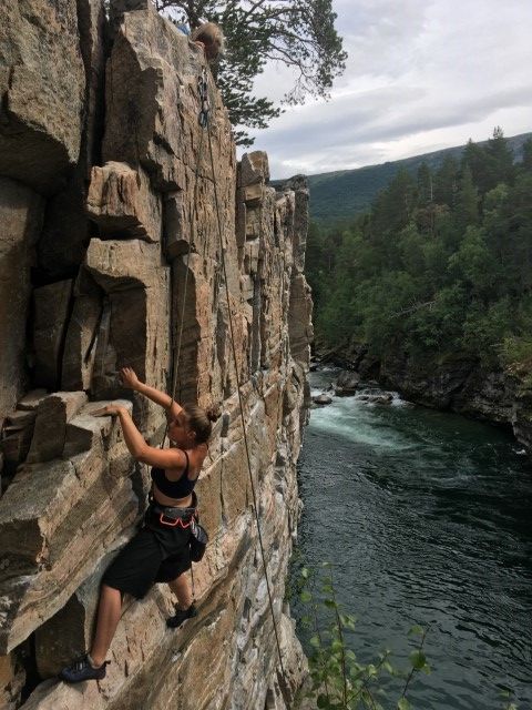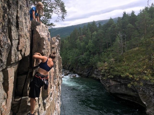 Dann gehen wir zu einem Sektor Namens Øvre der im Wald liegt. Auch dort steigen wir noch in einige Routen ein und das Klettern hier ist eine wahre Freude.