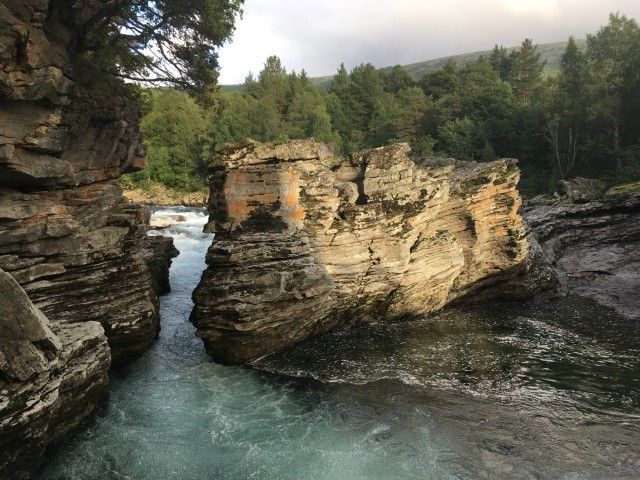 In der düsteren Stimmung des Abends, die sich langsam übers Land legt, machen wir uns auf den Weg nach Kristiansund. Dort wartet schon das nächste Klettergebiet auf uns - nämlich Kvitness. Die Fahrt dorthin ist einfach schön und an einem Fluss in der Nähe von Kristiansund finden wir ein schönes Plätzchen für die Nacht.