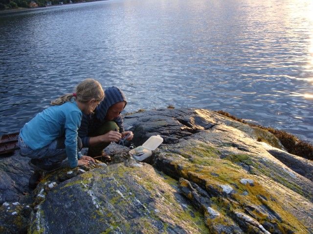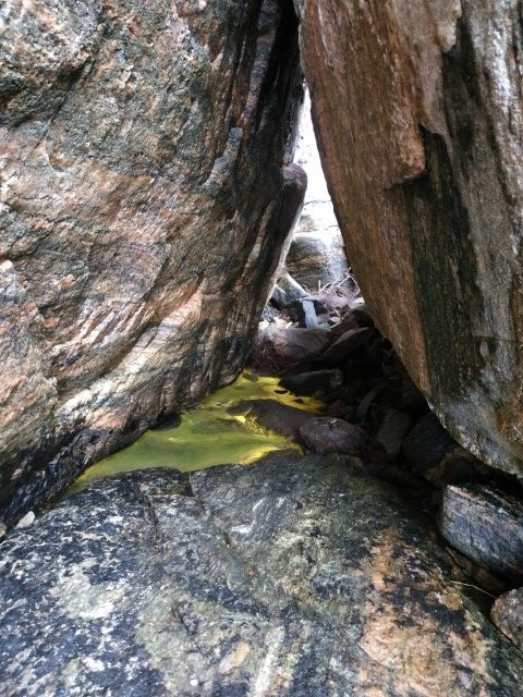 In einem Spalt zwischen zwei Steinbrocken findet Suria noch fluoreszierende Flüssigkeit. Was die Natur so alles kann!