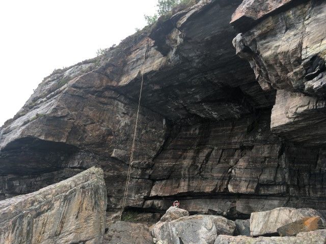 Die Wände sehen toll aus und wir flanieren durch alle Sektoren. Hier zu klettern muss fabelhaft sein, aber wer weiß - vielleicht ein andermal. Ein Weg durch eine Höhle führt zu einer Wand, an der jemand ein Seil zum Schwingen montiert hat.