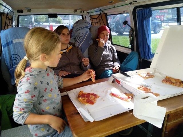 Wir bleiben optimistisch. Jaci checkt Pizza für alle und ich ein Airbnb und 2 Sechsertragerl für die Nacht.