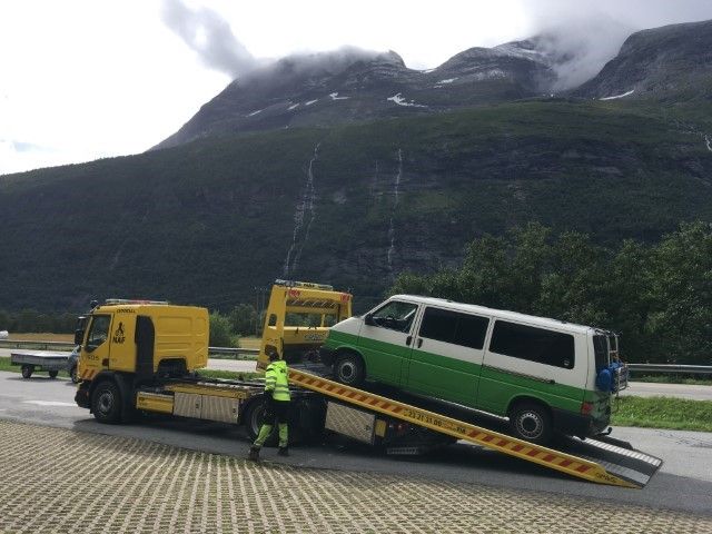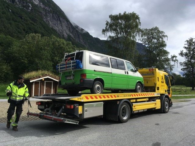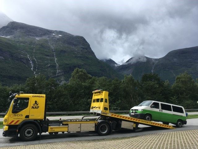 Der Abschleppservice bringt sie zu einer Werkstatt im nahegelegenen Oppdal und wir folgen unauffällig.