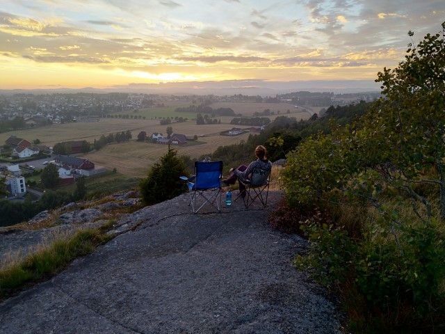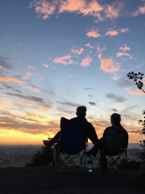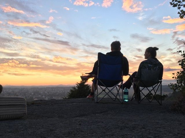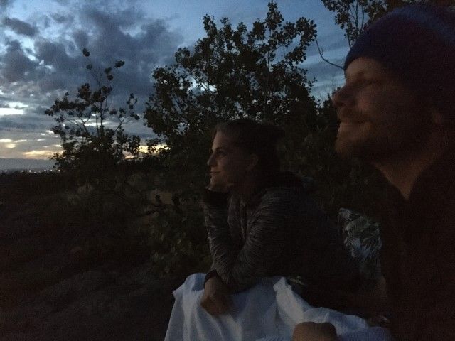 Zum Abschluss des Abends genießen wir den unfassbar kitschigen Ausblick und plaudern mit Bene und Suri, die sich zu uns gesellen…