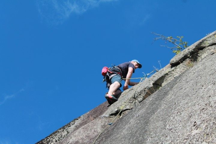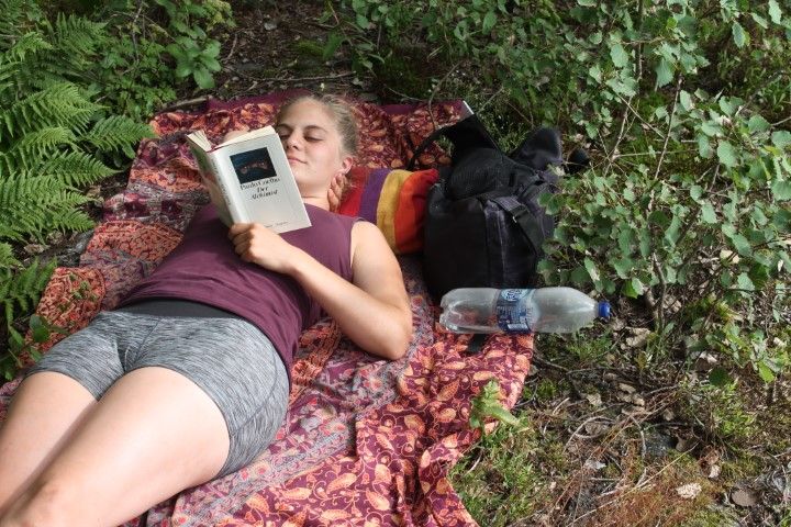 Der Wandfuß ist etwas ruppig, aber die Routen sind cool. Bene, Suri, Laura und ich steigen in ein paar Routen ein, während die Kinder Blaubeeren naschen. Jaci genießt den herrlichen Ausblick und schmökert ein bisschen in dem frisch angefangenen Buch: „Der Alchemist“ von Paolo Cohelo.