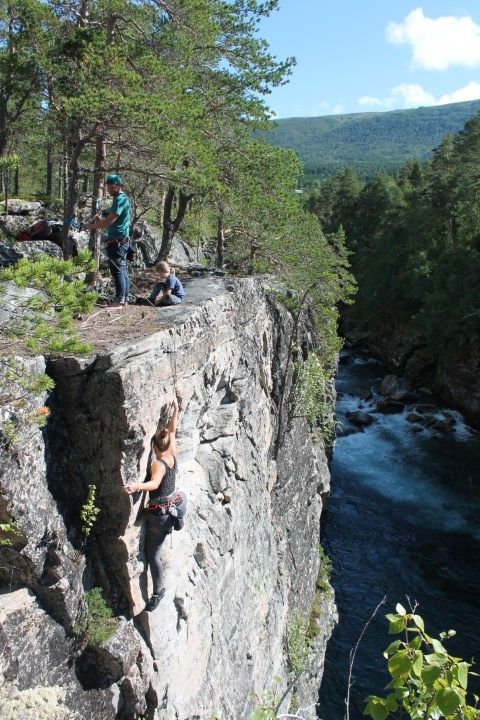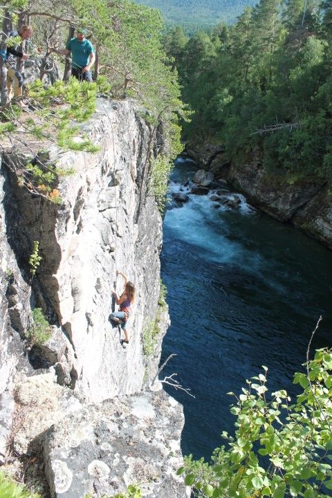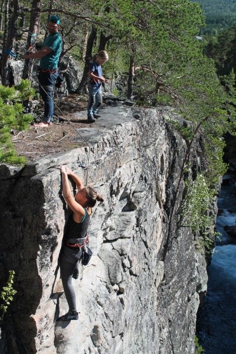An der Wand treffen wir noch ein deutsches Pärchen. Surya hängt ihnen eine Route ein und wir plaudern ein bisschen. Die letzte Tour des Tages und vermutlich für längere Zeit die letzte in Oppdal, gehe ich Toprope und Jaci zieht mich mehr nach oben als ich selbst gehe. So „durch“ sind wir.