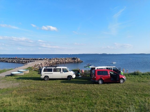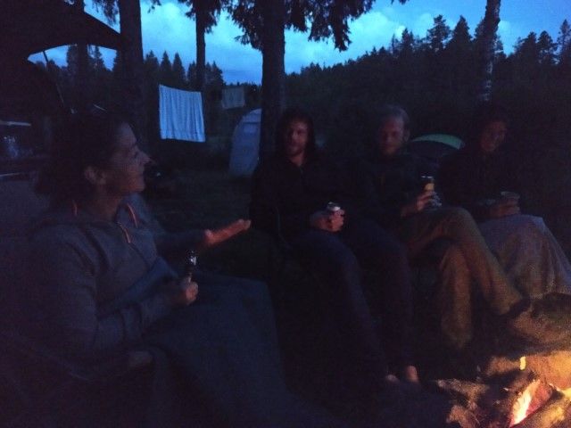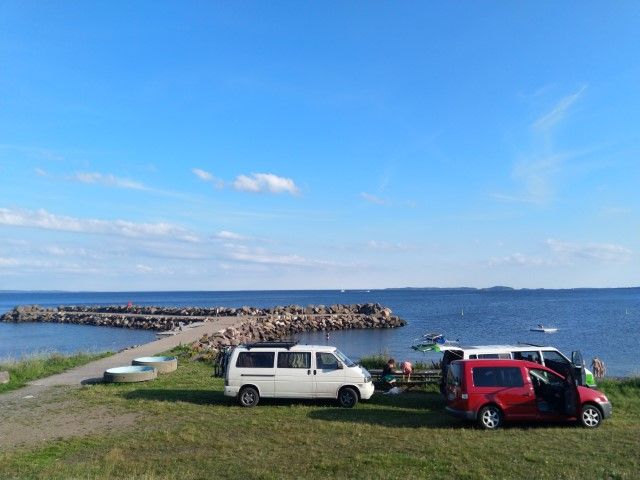 Wir sind nicht die einzigen und im Laufe des Abends setzen wir uns zu einer Norwegerin, die uns davor dazu einlud, ans Feuer. Wir trinken heute ein bisschen mehr Bier als sonst und plaudern aufgeregt über Corona, erneuerbare Energien und transportierbare Campingtoiletten.