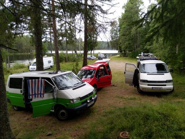 Die fette Made, was sich als Rufname unseres Busses etabliert hat, fährt mit den drei Duschwilligen und diversen Wasserbehältern zu Greir, unserem norwegischen Helfer.