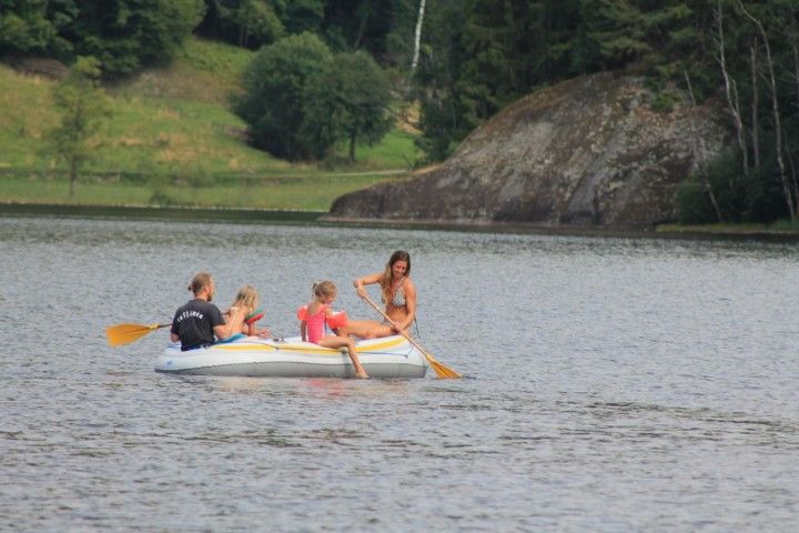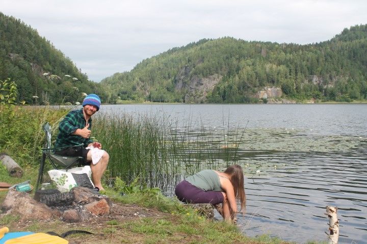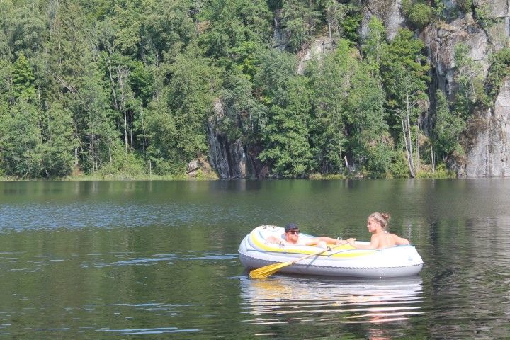 Währenddessen spielen wir mit Laura Karten und plaudern. Laura, Ronja und Valea werden den Reiseconvoy eine Zeit lang verlassen, da sie noch Freunde in Oslo besuchen. Der Tag am See entspannt und auch Jaci und ich nutzen das Schlauchboot für eine Tour über den See.