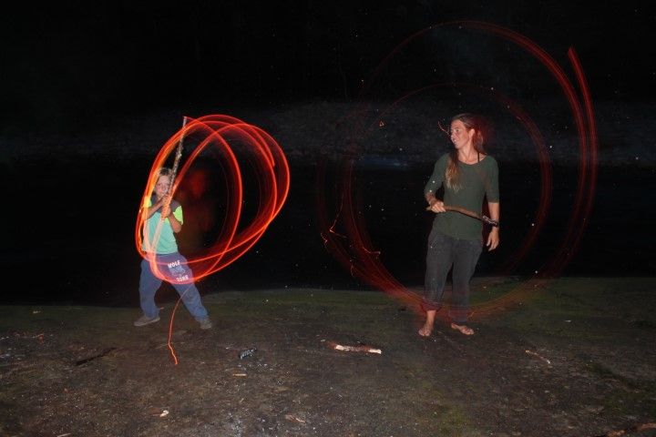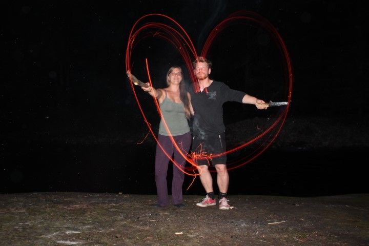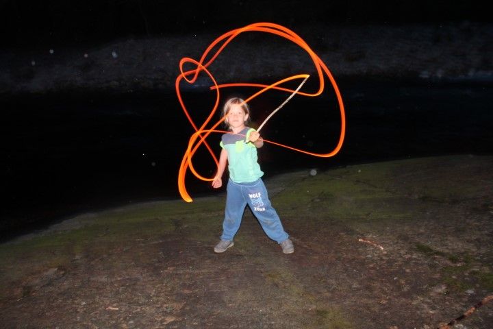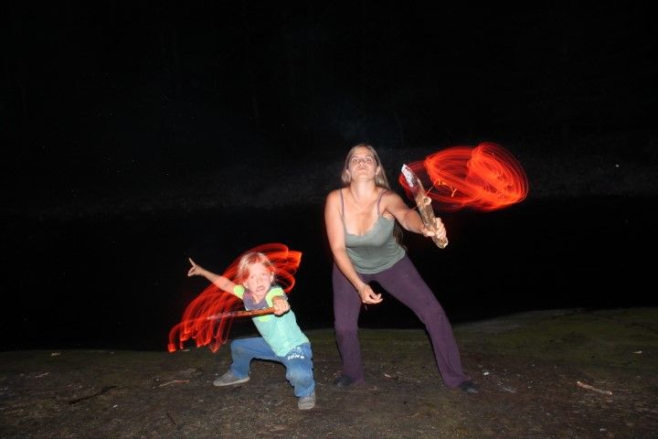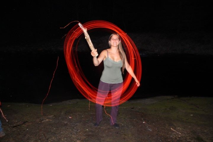 Er spielt mit den glühenden Stöcken und durch ein paar Belichtungseinstellungen gelingen coole Bilder von der Action.