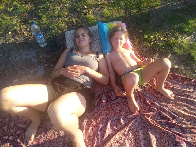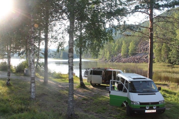 Erleichtert darüber, dass uns dieses Abenteuer erspart bleibt, erledigen wir die Einkäufe, besorgen noch ein Geschenk für Jonathan und suchen erfolglos nach einem HP Ladekabel mit Stecker für den Zigarettenanzünder. Danach holen wir unsere tapferen Freunde von der besagten Stelle ab. Sie berichten von einer anstrengenden Tour mit einigen schweren Passagen. Es gab auch schöne Momente und sie waren stolz auf ihren fleißigen Sohn. Wir beschließen in der Nähe zu kochen. Auf einem Platz an einem See bereiten Clemens und ich eine lecker Bolognese Sauce zu, während Bene, Suri und Jonathan baden.