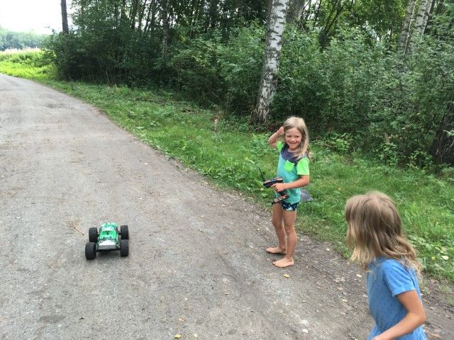 Von Bene und Suria bekommt Jonathan ein richtig flottes ferngesteuertes Auto, das er dann sogleich am Parkplatz ausprobiert. Mit einer super Geschwindigkeit fährt er mit dem Truck durch die Gegend und zu meiner Freude darf ich ihn auch mal lenken.