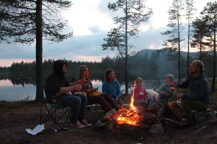 Ein Feuer schützt uns vor den Gelsen und wir essen zu Abend.