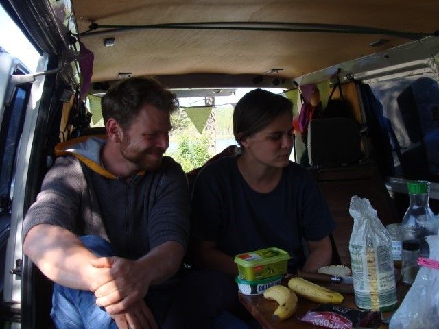 Hinter mir, bei den Bussen sind Opeth und Suri fleißig beschäftigt. Suri sorgt für ein leckeres Mittagessen und Opeth schlichtet unser Bussystem neu!