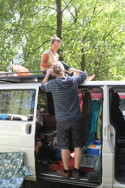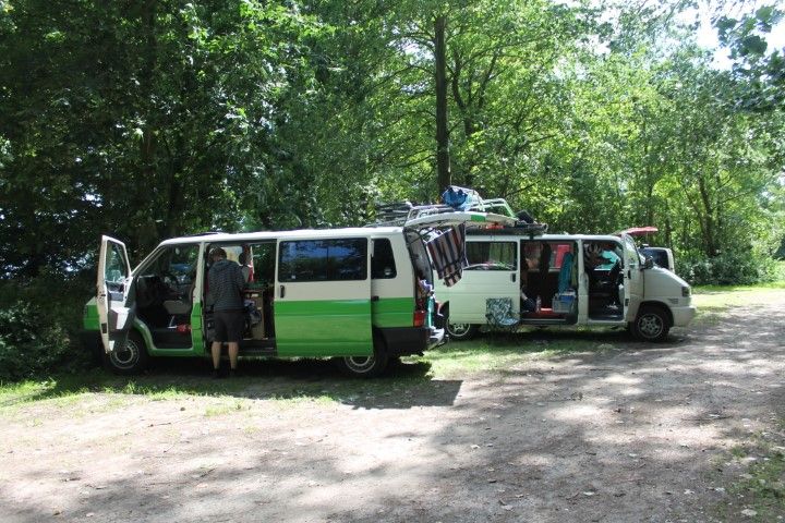 Nach einem Stopp bei „Bilka“, wo wir Badehose, Lichterkette und neue (nicht quietschende) Scheibenwischer einkaufen, übernehme ich das Steuer und bringe uns zum gewünschten Hafen. Im Wald daneben finden wir das passende Plätzchen für die Nacht. Bei einem Tagesabschluss-Bier besprechen wir den morgigen Tag und freuen uns auf die Überfahrt mit der Fähre…