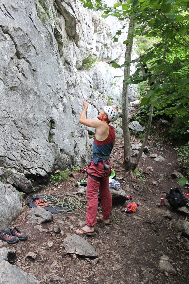 Weniger als 20 Minuten später überqueren wir die Grenze nach Deutschland, wo wir nach kurzem Zustieg, den Karlstein in Bad Reichenhall erreichen. Ein schöner Felsen mit fantastischen Routen in allen Schwierigkeitsgraden. Die Hängematte wird aufgebaut, die Gurte werden angelegt und der Felsen erklommen.