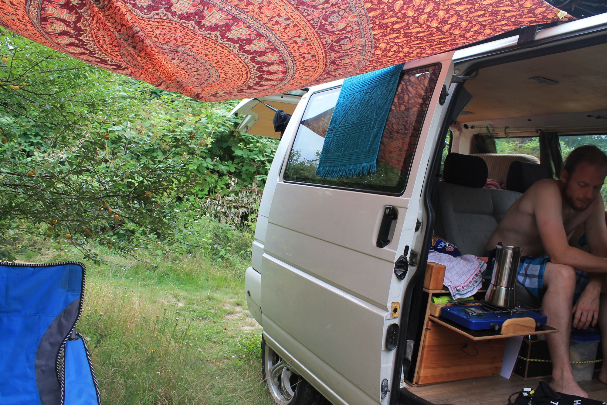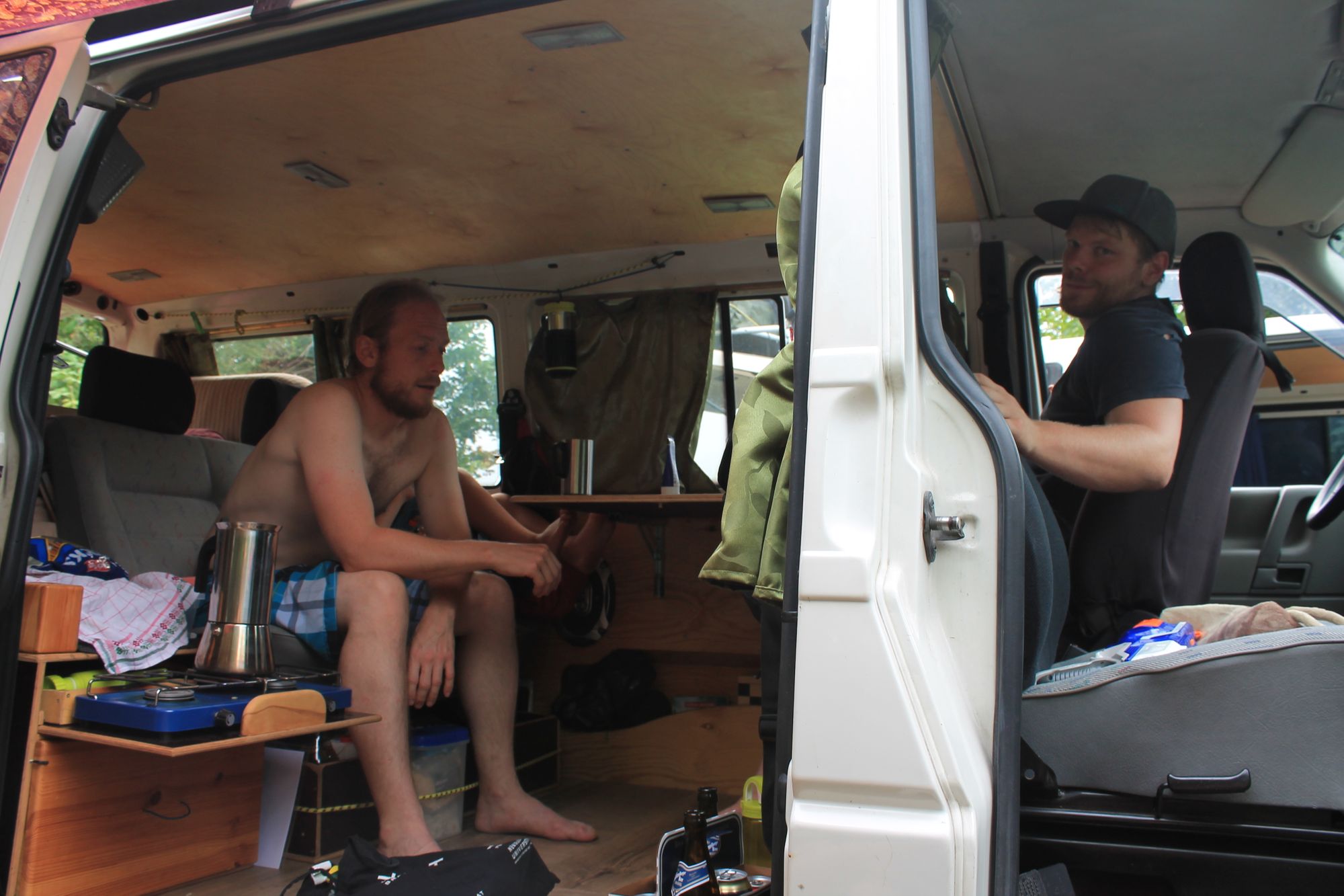 Opeth und ich machen den Bus sauber und zaubern eine wunderbare Lounge vor unserer Schiebetür. Wir machen uns frisch und fangen langsam an für uns und unsere Freunde zu kochen.