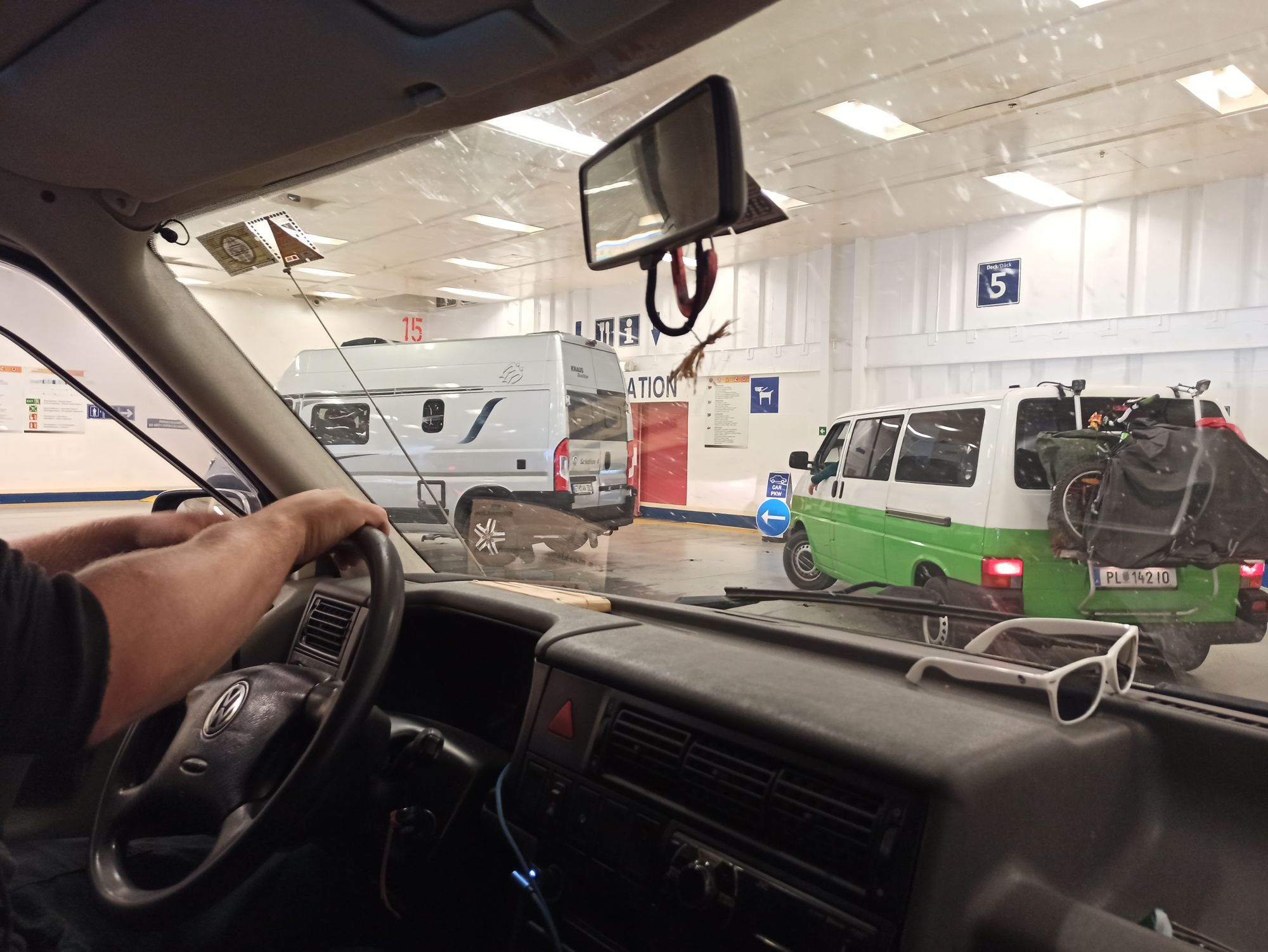 RAL0815 übernimmt die Führung und Opeth bei uns das Steuer. Ich schlafe so ziemlich die ganze Fahrt. Vier Stunden später erreichen wir unseren Schlafplatz (30 Minuten vom Hafen ins Rostock entfernt), essen und gehen schlafen. Die Fähre legt schließlich am nächsten Tag um 07:30 Uhr ab.