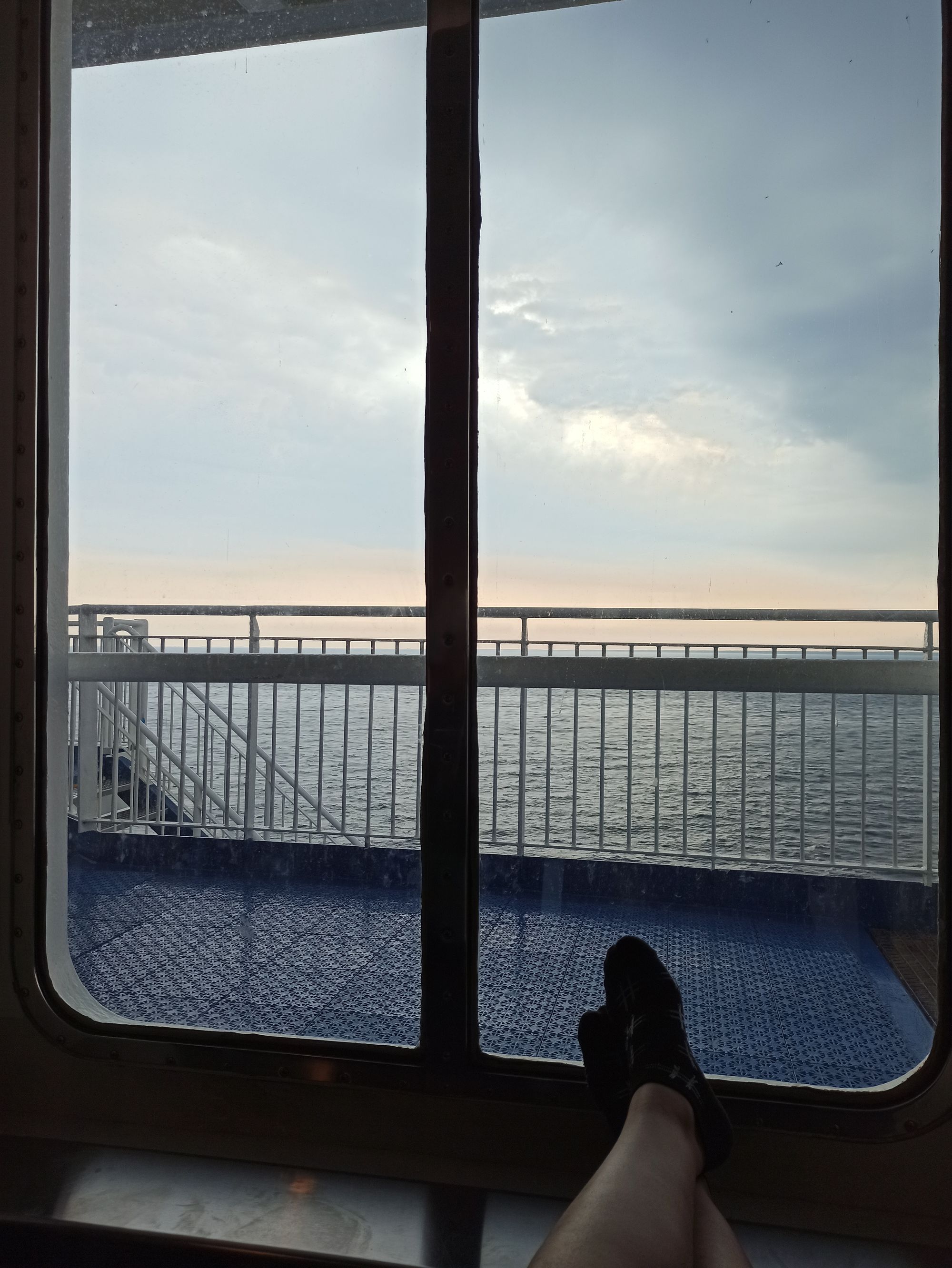 In aller Herr Gotts Frühe schmeiß ich mich zuerst in den See und dann in frisches Gewand. Wir brechen ohne lange Umschweife zur Fähre auf und nach kurzer Wartezeit am Check-In kochen wir Kaffee in der Schlange.