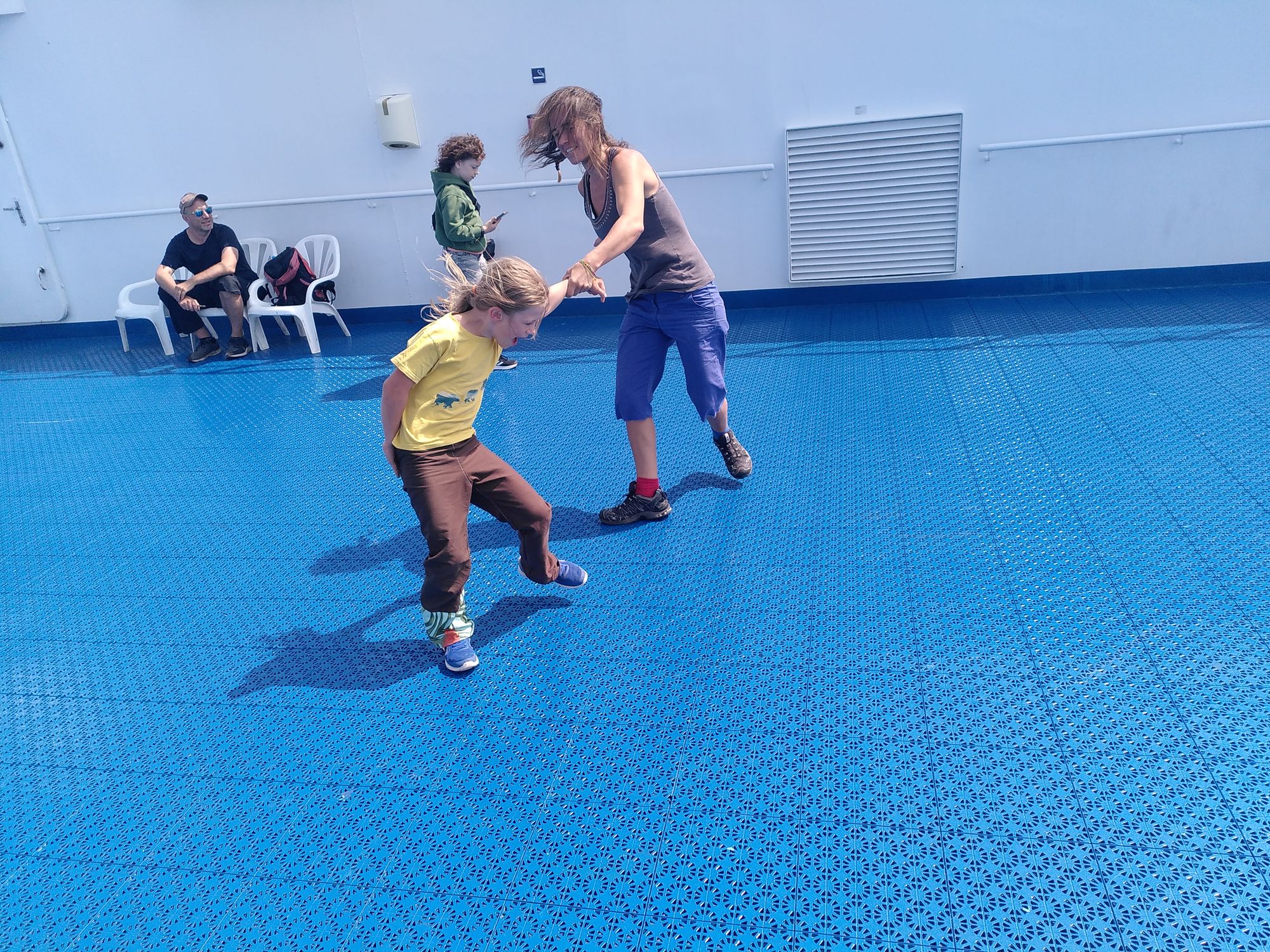 Kurz bevor wir anlegen, genießen wir noch gemeinsam den Ausblick und die frische Luft an Deck.
