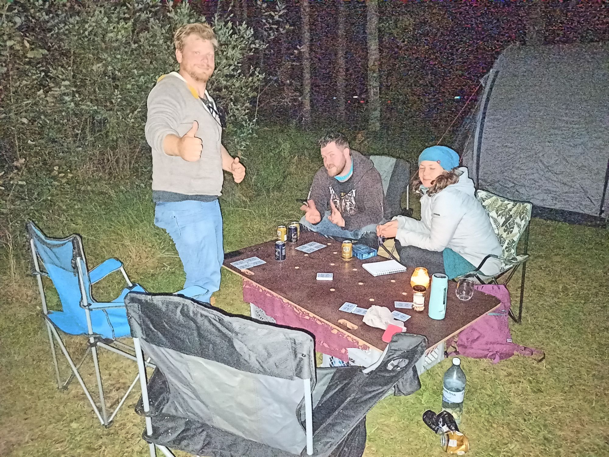 Um 18:30 kommen wir am Treffpunkt an und lotsen Julian und Sally noch das letzte Stückchen. Um 19:00 sind dann alle da. Nach einer freudigen Begrüßung bauen wir unser Lager auf und beginnen zu kochen.