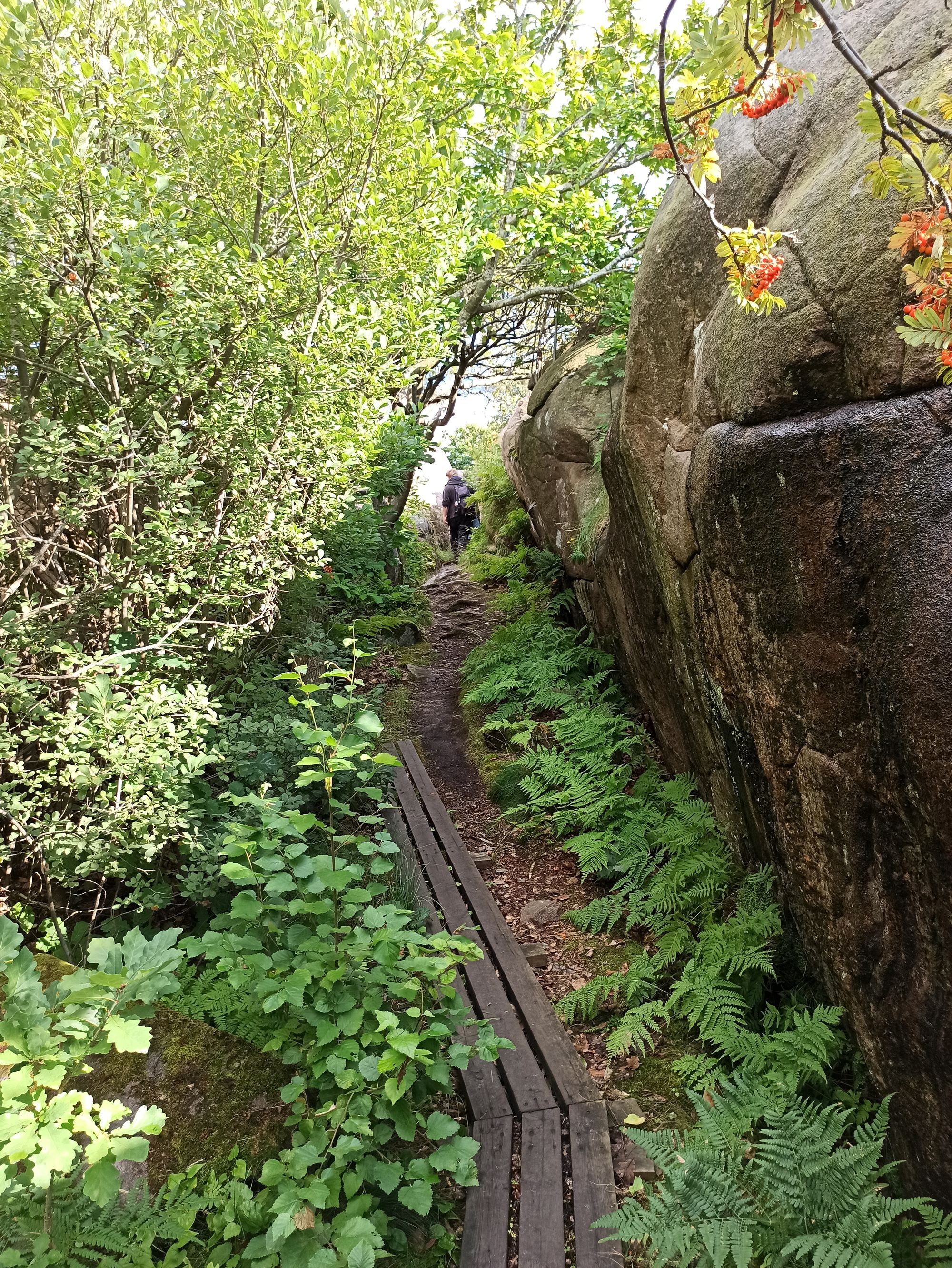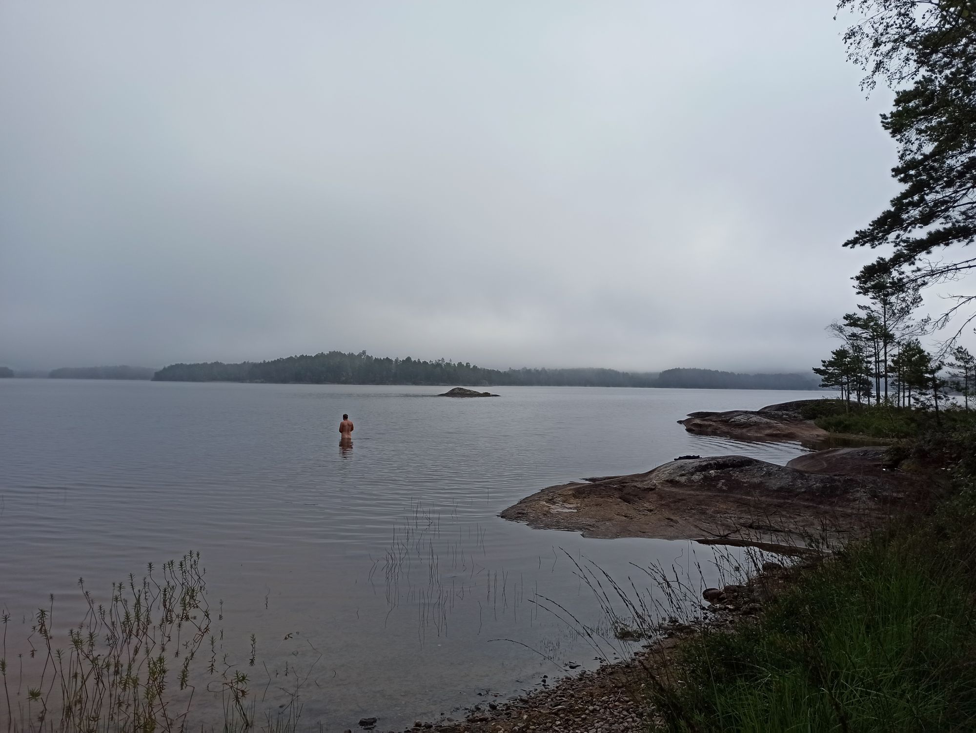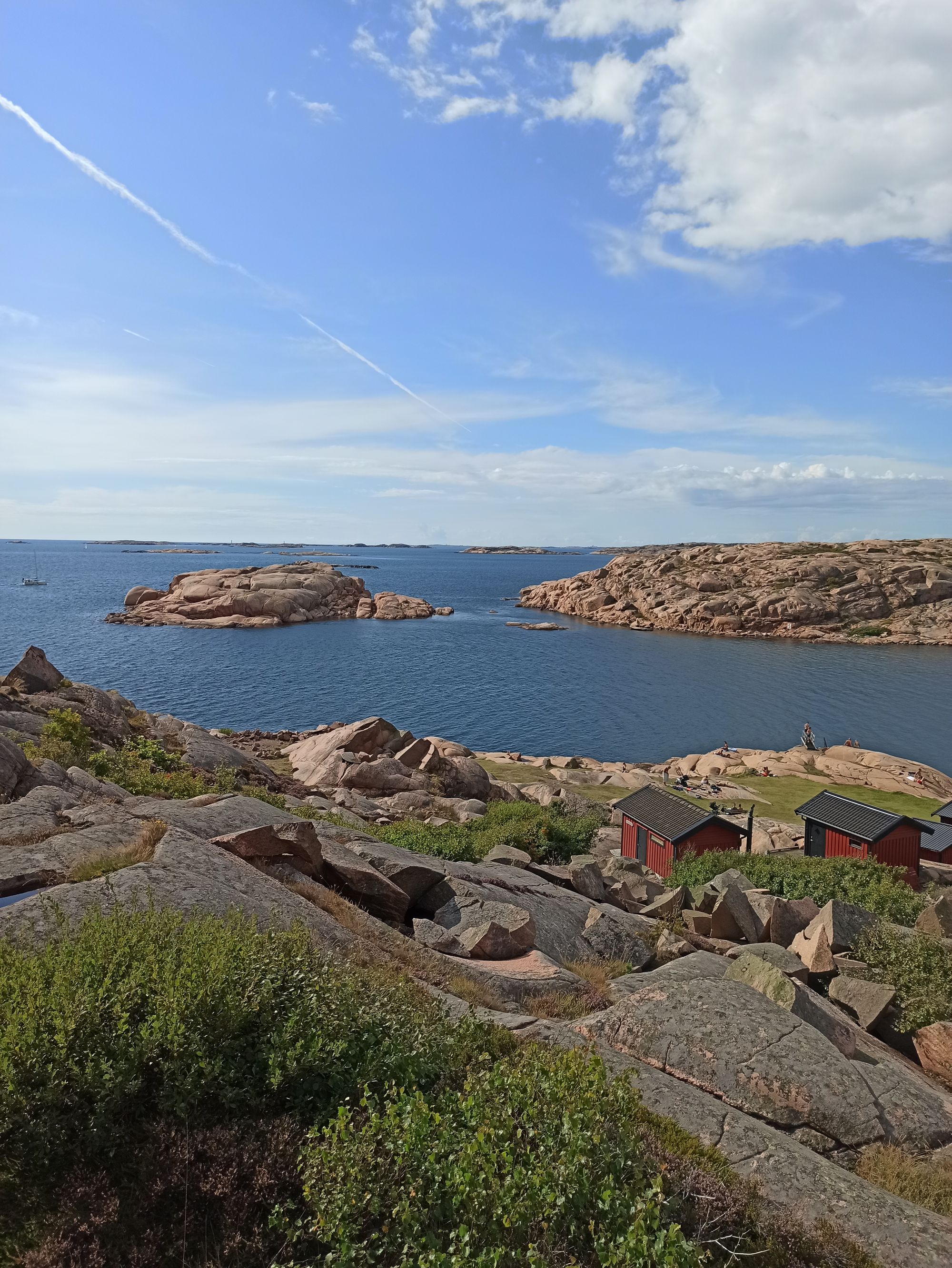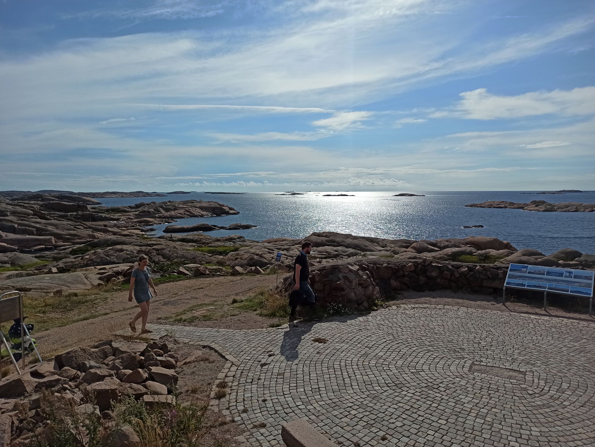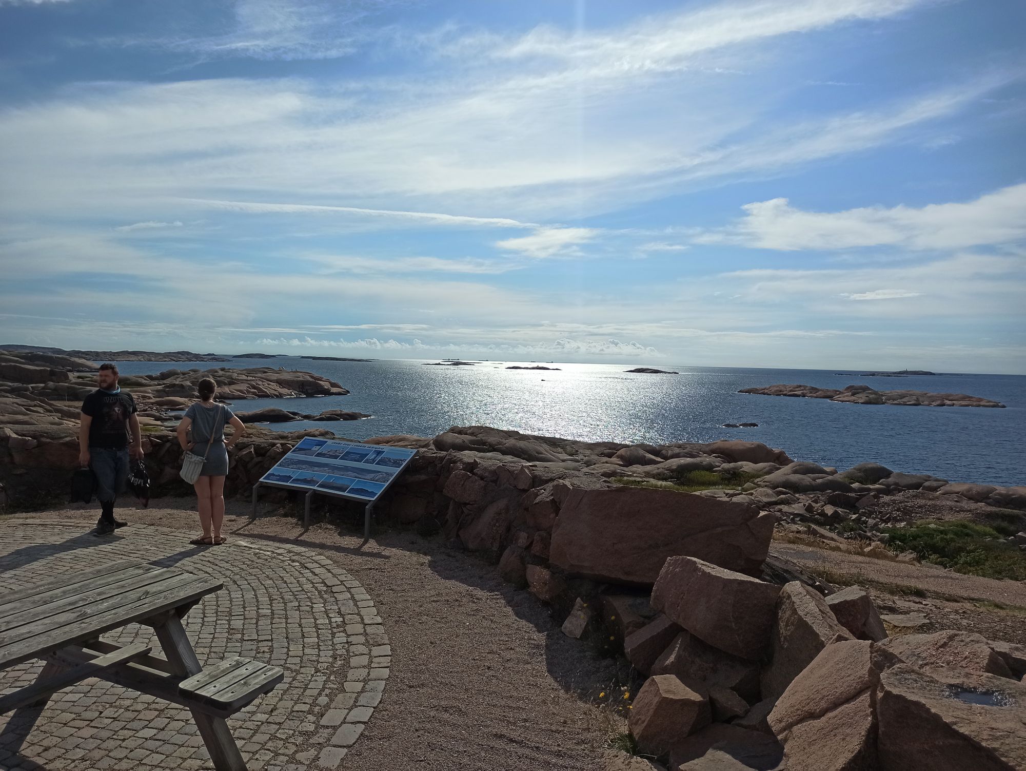 Ich sichere uns allen eine Portion Pommes, die wir auf den warmen Steinen am Wasser verputzen. Während sich Opeth und Julian in die Fluten schmeißen und den dort angelegten Springturm abchecken, mache ich ein Nickerchen in der Sonne und Sally erkundet die Gegend. Als ich aufwache spaziere ich zu Sally, die gerade die riesigen Quallen im Wasser betrachtet. Wir sitzen lange am Wasser und schauen den Quallen zu, wie sie von den Wellen bewegt werden. Wir plaudern über unsere Erfahrung mit Gewässern und unsere Kindheit. Um 16:30 Uhr packen wir uns zusammen. Sally zeigt uns noch einen schönen Weg, der obenherum zum Auto führt. Von hier aus sieht man die schöne Landschaft besonders gut.