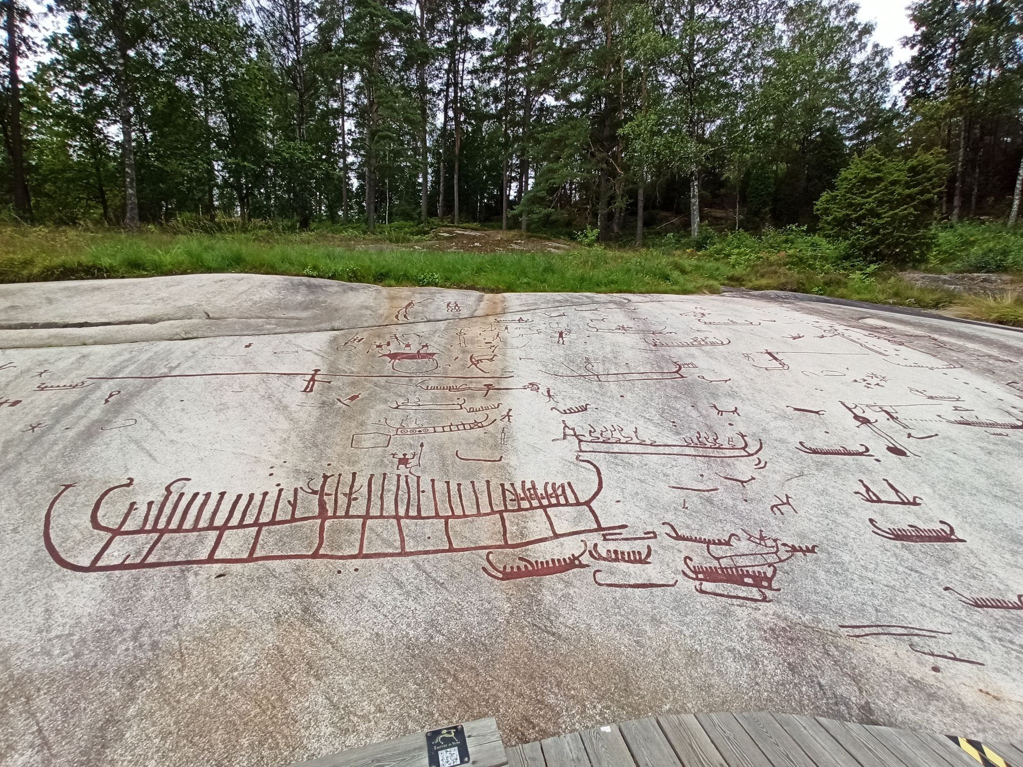 Um 10:45 Uhr startet unsere Reise. Wir machen nach einer Stunde einen Halt in Tanumshede und schauen uns tolle, alte Steinmalereien an, die wir freudig interpretieren.