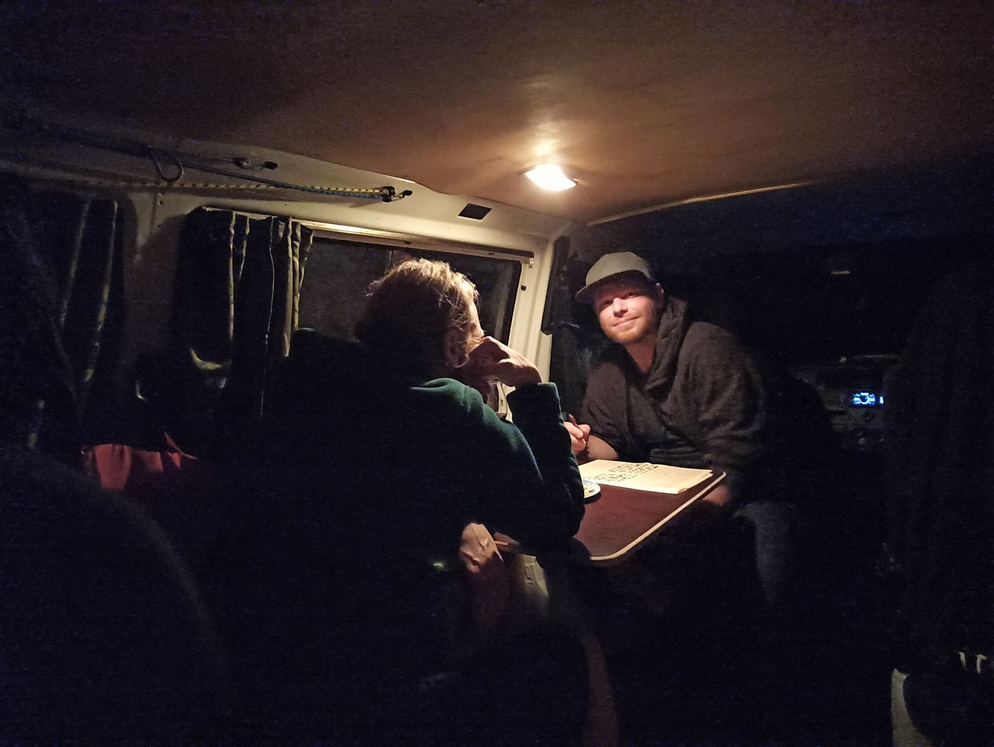 Jaci schlägt vor Packerlsuppe zu machen und da es so gut zum Wetter passt, legen wir gemeinsam damit los. Nachdem Jonathan und Surya sich schlafen legen, löse ich mit Bene noch ein Kreuzworträtsel in der fetten Made.